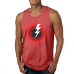 Electrify your style with this bold red men’s tank top, showcasing the legendary Pearl Jam lightning bolt logo encased in a vivid red and black circle. A perfect blend of style and rock-inspired energy.