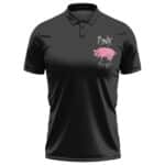 Introducing the Rock Band Pink Floyd Minimalist Pink Pig Icon Logo Black Polo Tee – a fusion of iconic rock imagery and contemporary style that will make you stand out from the crowd.